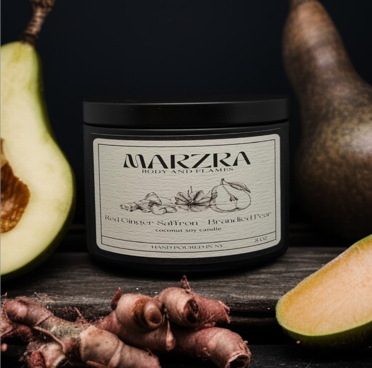 Awaken your senses with the vibrant warmth of red ginger and saffron, perfectly balanced with the sweet, crisp essence of brandied pear. Hand-poured in a luxurious coconut soy blend, this candle transforms any space into an elegant, inviting retreat.